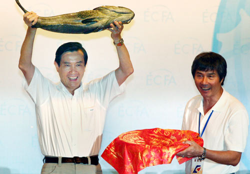 另?yè)?jù)臺(tái)灣傳媒報(bào)道,ECFA受益的業(yè)者,1日出席座談會(huì),帶來(lái)一堆秋刀魚(yú)、石斑,要送給馬英九。遠(yuǎn)洋漁業(yè)者表示,高雄有秋刀魚(yú)作業(yè)漁船77艘,2009年的漁獲量約10萬(wàn)公噸,但臺(tái)灣的消費(fèi)量約只有3萬(wàn)公噸,因此,他們會(huì)以大陸為主要輸銷(xiāo)市場(chǎng)。兩岸簽訂ECFA后,業(yè)者銷(xiāo)往大陸的魚(yú)貨更有保障。