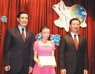 該獎(jiǎng)項(xiàng)今年頒發(fā)新臺(tái)幣200萬元獎(jiǎng)學(xué)金,共150位學(xué)生獲獎(jiǎng),由縣長(zhǎng)吳志揚(yáng)主持,馬英九頒獎(jiǎng)合照。