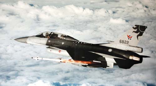 中新網(wǎng)8月5日電 據(jù)臺(tái)灣《聯(lián)合報(bào)》報(bào)道,臺(tái)灣空軍花蓮基地兩架F16戰(zhàn)機(jī)日前演習(xí)射擊魚叉飛彈。
