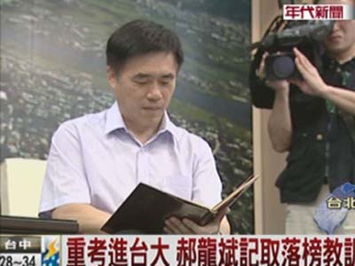 中新網(wǎng)8月6日電 據(jù)臺灣“今日新聞網(wǎng)”報(bào)道,今天是學(xué)測發(fā)榜的日子,幾家歡樂幾家愁,考上了固然開心,沒考上也不要太氣餒。臺北市長郝龍斌當(dāng)年也是重考才考上臺大,在高中時(shí)期一向品學(xué)兼優(yōu)的他,考前因?yàn)樨澩,沒想到榜上無名,讓自己和家人都不敢置信。
