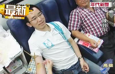 據(jù)報道,陳致中在8日利用跑選舉行程的空檔,前往捐血中心捐血250CC,對于主持人的說法顯得“有點尷尬”。