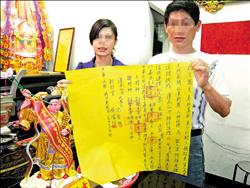 中新網(wǎng)8月11日電 你相信人神戀嗎?在嘉義有一名情路坎坷的男子,無意間幫朋友酬神,他說后來感應到神明闖入夢中,與其相戀,還說要以身相許,他果真由父母作主,把神明給娶回家供奉。這場另類婚禮還特地找來年輕女子代替女主角,雙方象征性互戴戒指完婚。