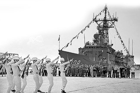 臺軍中年頭最久的傳統(tǒng)莫過于“海龍王大典”。據(jù)臺媒報道,臺海軍的敦睦遠(yuǎn)航支隊每年要穿越赤道一次,所有艦艇一字排開,橫著穿過赤道。同時艦艇上的汽笛拉響一分鐘,艦尾則噴水柱以示慶祝。除值班官兵外,所有人都要到甲板集合,舉行 “海龍王大典”。儀式由支隊長或艦長主持,他們帶頭焚香禱告并獻(xiàn)上牲果祭拜,祈求上天保佑航行平安。接著,甲板上會出現(xiàn)由海軍官校學(xué)生扮演的“海龍王” 和“蝦兵蟹將”。他們身穿龍王服、手持龍王杖、頭戴龍王面具,煞有介事地“出巡”,隨后向全艦官兵宣讀“圣旨”,同意艦艇通過赤道線!昂}埻酢边會頒發(fā)“過赤道證書”,由艦長恭敬接過。