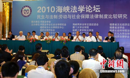 2010年海峽法學(xué)論壇當(dāng)日在福州舉行。勞動(dòng)與社會(huì)保障是當(dāng)前中國社會(huì)矛盾的熱點(diǎn)之一,此次論壇因此以“民生與法制:勞動(dòng)與社會(huì)保障法律制度比較研究”為主題。