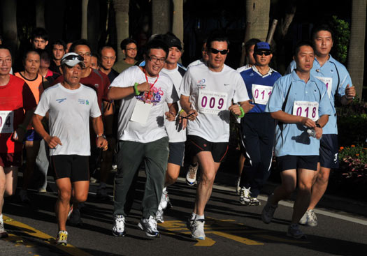 中新網(wǎng)8月23日電 第二屆“光仁陪你慢慢跑”慈善路跑活動22日上午在臺北熱鬧開跑,馬英九應(yīng)邀到場,換上運動短褲,大秀“馬腿”。在二千多名選手中,他的運動服已不再顯得“特別”,開始變得“保守”。而早前李登輝批評他時,曾以他的短褲做文章。