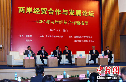 中新社廈門9月8日電(記者 林永傳)由中國國家商務(wù)部、國務(wù)院臺辦主辦的第五屆兩岸經(jīng)貿(mào)合作與發(fā)展論壇,8日下午在廈門國際會展中心國際廳舉行,兩岸學(xué)術(shù)界和工商界知名人士圍繞“ECFA與兩岸經(jīng)貿(mào)合作新格局”的主題進(jìn)行深入探討。
