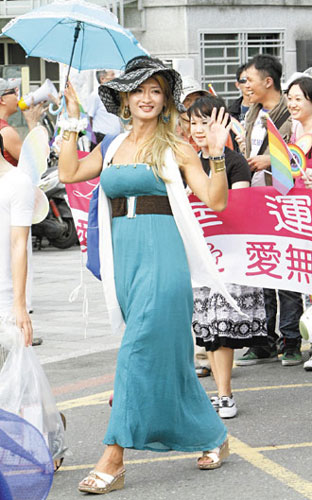 男“同志”小莫(化名)打扮成美麗的儀隊隊員,走在隊伍前端,背后還大方寫著:“I'm Gay,and you?”。他說,因?yàn)檐婈牎x隊是象征,而“同志”的權(quán)益長期受到漠視,也需要努力捍衛(wèi)。高頭大馬的喬許(Josh)則男扮女裝成歌手凱莉•米洛。他表示,是因?yàn)閯P莉•米洛很支持“同志”運(yùn)動。