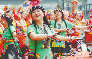 昨天,在南京人氣最旺的新街口,回蕩著《阿里山的姑娘》、《外婆的澎湖灣》等耳熟能詳?shù)呐_(tái)灣樂(lè)曲。