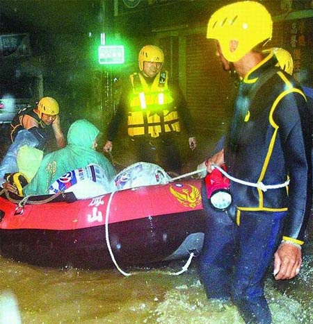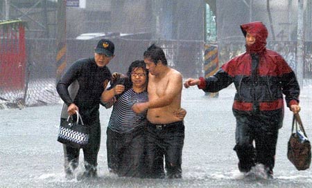 “凡那比”的雨量讓高高屏成了水鄉(xiāng)澤國。高雄縣有12個鄉(xiāng)鎮(zhèn)市淹水,部分地區(qū)淹水超過腰部,119及110勤務(wù)中心人員接求救電話接到手軟。大社鄉(xiāng)灣內(nèi)村呂姓民眾說:“水漲得很快,一下子就淹到胸口,家具全泡水!