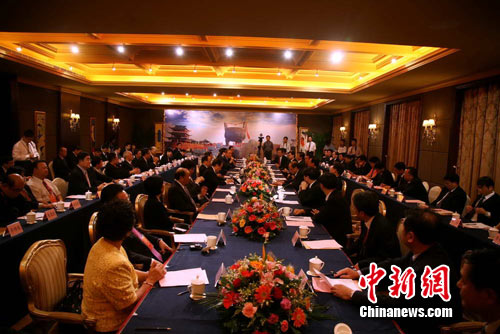 定于9月24日開幕的“2010贛臺(贛州)經(jīng)貿(mào)研討會”,由國臺辦和江西省政府聯(lián)合主辦,臺灣工商界、科技界、政界嘉賓約500人應邀到會,江西省省長吳新雄、國臺辦副主任鄭立中以主辦方代表身份亮相,并參加了大會開幕前的賓主見面會。