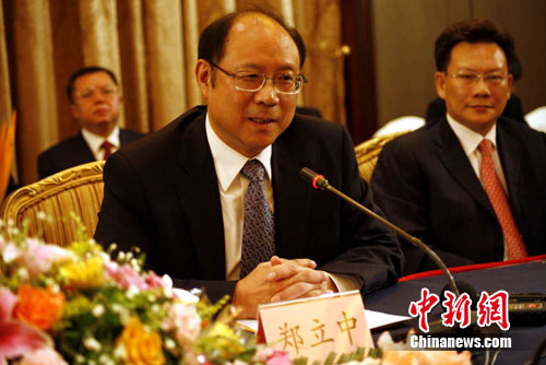 鄭立中在演講中首先回顧了近3年來(lái)兩岸關(guān)系發(fā)展的歷程。鄭立中指出,2008年,在兩岸同胞的共同努力下,兩岸關(guān)系出現(xiàn)了歷史性轉(zhuǎn)折,步入了以“和平發(fā)展”為主題的歷史新階段。秉承著“建立互信、擱置爭(zhēng)議、求同存異、共創(chuàng)雙贏”的精神,兩岸雙方開始建立并不斷增進(jìn)了政治互信,恢復(fù)了“兩會(huì)”制度化、事務(wù)性的協(xié)商,實(shí)現(xiàn)了兩岸全面、直接、雙向“三通”,兩岸大交流、大合作、大發(fā)展的局面初步形成并蓬勃發(fā)展。