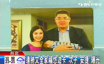 中新網(wǎng)9月25日電 據(jù)臺(tái)灣TVBS電視臺(tái)報(bào)道,連戰(zhàn)長(zhǎng)子連勝文和兒媳蔡依珊為保護(hù)孩子,堅(jiān)持不讓連定捷、連安捷兩個(gè)孩子輕易曝光,不過(guò)最近上千名國(guó)民黨代表,都收到一份別致的小禮物--蔡依珊、連勝文抱著連安捷一起拍合照制作成上千張悠游卡,連安捷可愛(ài)的的模樣也首度曝光。