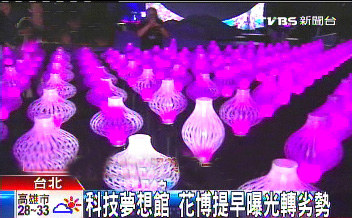 中新網(wǎng)9月25日電 據(jù)臺(tái)灣TVBS電視臺(tái)報(bào)道,臺(tái)北花博顧問(wèn)團(tuán)25日第3度到花博園區(qū)視察,了解相關(guān)營(yíng)運(yùn)狀況;ú┮舶岢雒孛芪淦,由“工研院”研發(fā)的電子草,配合光影和音樂(lè)跳舞,還有夢(mèng)想魔法的互動(dòng)區(qū),透過(guò)民眾的雙手,就會(huì)看見(jiàn)裸視3D屏幕產(chǎn)生變化。
