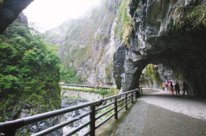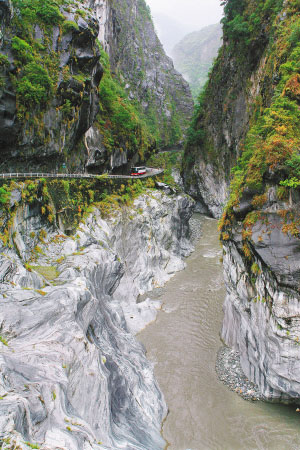 按行程安排,我們當(dāng)晚就要馬不停蹄地趕往100公里外的宜蘭縣。到宜蘭縣已是晚上9點多,下榻的酒店就在路邊。沿途有不少都是溫泉酒店,大部分建在路邊,規(guī)模不大,都是私人經(jīng)營,但很干凈。次日早餐后,我們冒雨乘車駛上橫貫臺灣南北的中橫公路。當(dāng)天主要是游覽臺灣著名景點———花蓮縣的太魯閣大峽谷。