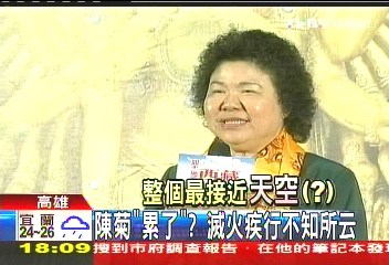 報道稱,盡管被批得滿頭包,陳菊還是照跑行程,29日下午和高雄縣長楊秋興同臺時,不但顯露疲態(tài),還有點(diǎn)語無倫次。道歉、勘災(zāi)、還得跑行程,陳菊只能用焦頭爛額來形容。