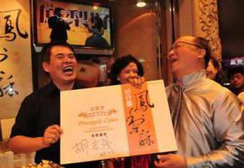 胡志強(qiáng)說,她的太太邵曉鈴就讀大甲鎮(zhèn)東陽小學(xué),所以他也是大甲的女婿,今年裕珍馨參加2010菠蘿好酥獲獎后,他也因而認(rèn)識了裕珍馨老板陳裕賢,知道他很用心制作,制作過程也很衛(wèi)生,所以主動要求為裕珍馨的產(chǎn)品代言,希望把好產(chǎn)品推銷給全世界的消費(fèi)者。