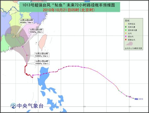 中新網(wǎng)10月21日電 據(jù)“中央社”報(bào)道,臺灣“氣象局”表示,超強(qiáng)臺風(fēng)“梅姬”(大陸稱“鲇魚”)于今日凌晨2時(shí)進(jìn)入東沙島南南東海面,持續(xù)朝北前進(jìn),威脅東沙島、巴士海峽及臺灣海峽海面,2時(shí)30分正式發(fā)布海上臺風(fēng)警報(bào)。