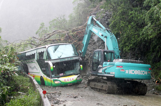 據(jù)臺灣《聯(lián)合報》報道,受臺風(fēng)“梅姬”(大陸稱“鲇魚”)及東北季風(fēng)影響,臺灣各地連日來普降大雨,東北部山區(qū)的雨量尤其驚人,導(dǎo)致蘇花公路沿線落石坍方不斷,大批游客乘坐的游覽車遭遇坍方而受困。