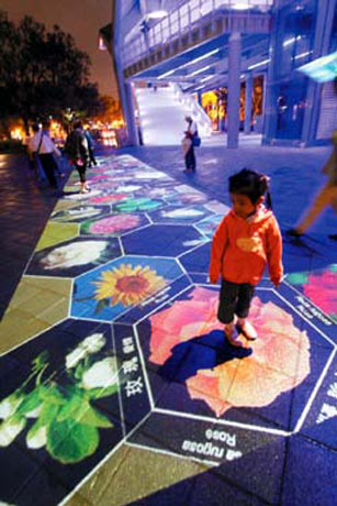 中新網(wǎng)10月27日電 據(jù)臺灣《聯(lián)合報》報道,臺北花博測試28日將是最后一天,25日起開放夜間入園后,除大直橋藍色光雕令民眾驚艷,走進“圓山投影互動光雕”感應(yīng)區(qū),每踩下一個花苞,花朵會瞬間綻放,四周還顯示花卉信息,成夜間新景點。