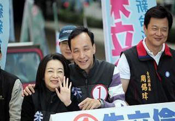 中新網(wǎng)11月25日電 據(jù)臺(tái)灣“今日新聞網(wǎng)”報(bào)道,臺(tái)北縣長(zhǎng)周錫瑋24日與國(guó)民黨新北市長(zhǎng)候選人朱立倫夫婦進(jìn)行車隊(duì)掃街拜票,全力沖刺爭(zhēng)取選民投票支持。