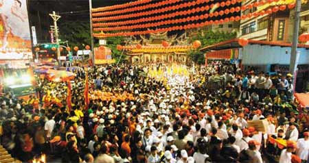 昨天上午9時起,全臺各地信眾不斷涌入大甲鎮(zhèn),將鎮(zhèn)瀾宮周邊街道擠得水泄不通,愈晚愈熱鬧。大甲警方出動警、民力三百三十人,自下午3時交通管制;縣文化局規(guī)劃大甲媽祖觀光文化節(jié),下午6時起安排街頭表演,另獅陣、虎陣、藝閣、神偶、陣頭及神轎不斷聚集鎮(zhèn)瀾宮,到處人頭攢動。