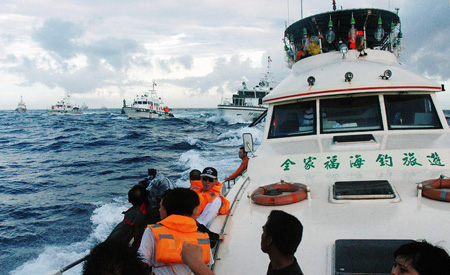 馬英九當(dāng)局的強(qiáng)硬態(tài)度,讓保釣人士格外興奮。黃錫麟等人再次出海保釣,也沒有遭遇任何阻攔。臺(tái)灣保釣行動(dòng)聯(lián)盟12名成員及30名隨行記者,登上“全家!碧(hào)海釣船,前往釣魚島宣示“主權(quán)”。一路上還有臺(tái)灣“海巡署”的軍艦保護(hù)。