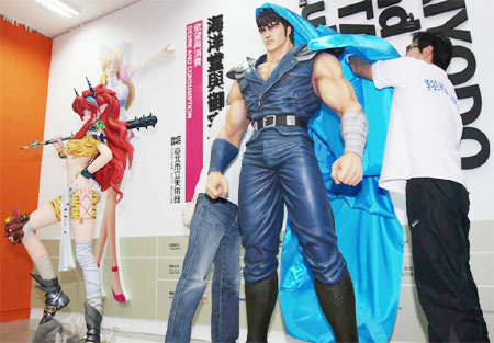 中新網(wǎng)11月14日電 據(jù)臺(tái)灣《中國時(shí)報(bào)》報(bào)道,臺(tái)北市立美術(shù)館將于十六日舉辦“欲望與消費(fèi)——海洋堂與御宅族文化展”,預(yù)計(jì)將展出三千件大中小型動(dòng)漫模型。圖為與真人一樣大的模型——北斗神拳的帥氣男主角“拳四郎”。