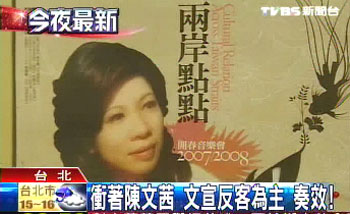 中新網(wǎng)2月24日電 臺(tái)灣名嘴陳文茜成了演奏會(huì)海報(bào)主角!盡管不是陳文茜開演奏會(huì),只是客串彈鋼琴,但被當(dāng)成主角一樣宣傳。主辦單位說得明白,就是要借重她的名氣,果然吸引許多觀眾。