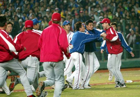 據(jù)臺(tái)灣媒體報(bào)道,這場(chǎng)在臺(tái)中舉行的大戰(zhàn)中,也出現(xiàn)比賽之外的不必要插曲。中國(guó)臺(tái)北隊(duì)球員力阻加拿大隊(duì)追平分,情緒自然激昂,卻沒(méi)想到球員額外的情緒發(fā)泄惹惱了加拿大球員,造成雙方球員跑入場(chǎng)中推擠理論,連球迷也紛紛丟擲雜物進(jìn)場(chǎng),爆發(fā)八搶三奧運(yùn)棒球資格賽開賽以來(lái)最大沖突。