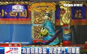報道說,節(jié)目包括大家熟知的明華園,還有云門舞集,其它還包括朱宗慶的打擊樂團以及小西園掌中戲等等,目前都在征詢檔期。