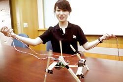 這種機器人是筷子搭起來的,重量很輕,也很便宜,只要兩千元新臺幣的成本就可以完成一個。