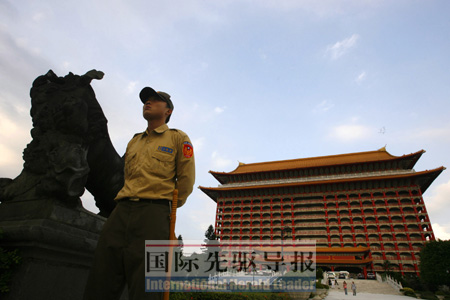 國(guó)際先驅(qū)導(dǎo)報(bào)特約撰稿沈宇哲發(fā)自上海 在臺(tái)北,有一座中國(guó)宮殿式建筑,它高達(dá)14層,隨處可見七彩畫梁、丹朱圓柱和琉璃金瓦。依傍基隆河、高聳于劍潭山之腰的它,正是海協(xié)會(huì)會(huì)長(zhǎng)陳云林此次赴臺(tái)下榻的臺(tái)北圓山大飯店。