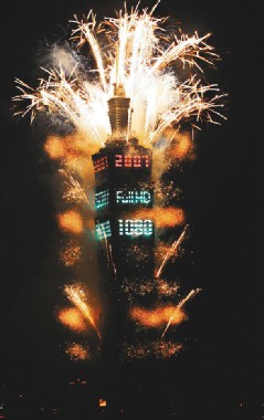 盛名遠播的一○一大樓跨年煙火秀。