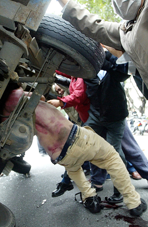 臺(tái)灣當(dāng)局強(qiáng)拆“大中至正”匾額爆發(fā)流血事件,民眾彭盛露涉嫌駕駛小貨車瘋狂加速撞上東森攝影記者王瑞璋,王送醫(yī)急救后傷勢(shì)漸穩(wěn)定,目前努力復(fù)建中。記者侯世駿/攝影