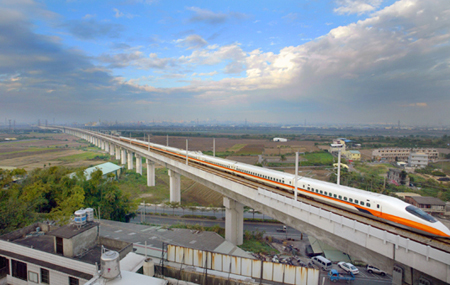 歷經(jīng)一連串風(fēng)波后,臺(tái)灣高鐵正式通車營運(yùn),成為臺(tái)灣交通史新的里程碑,目前旅客已突破1500萬人次。圖為高鐵列車通過彰化縣進(jìn)入臺(tái)中縣前的畫面。記者于志旭/攝影