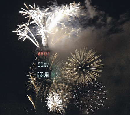 迎接2007年,臺(tái)北地標(biāo)101大樓施放璀璨炫麗的煙火營造新年歡樂氣氛。一年又過了,迎接2008的到來!記者侯世駿/攝影