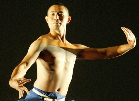 《男人跳舞》登上臺北舞臺,從父親的關(guān)系、女性特質(zhì)、暴力、變身及性別等主題出發(fā),剖析多變與復(fù)雜的男性認(rèn)同議題。圖為獨舞的泰國古典面具舞者皮歇•克朗淳。記者林秀明/攝影