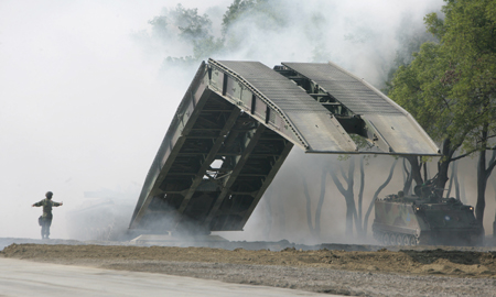臺軍演習(xí)反擊對手突襲導(dǎo)彈基地 場面逼真(圖)