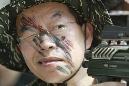 謝長(zhǎng)廷“漏網(wǎng)鏡頭”:臉涂迷彩 大玩倒立(組圖)