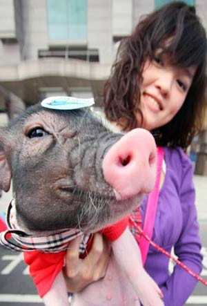 藍營“臺灣向前行,全民大游行”活動,一對年輕人牽著心愛的小豬豬一塊參加游行,引人不少目光。聯(lián)合報圖