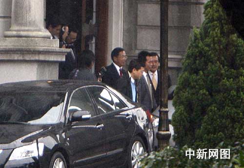 陳水扁與馬英九兩人選后的首度會面4月1日上午在臺北賓館舉行。會談結(jié)束后,陳水扁親自到門口送馬英九搭車離去。(杜洋/攝)