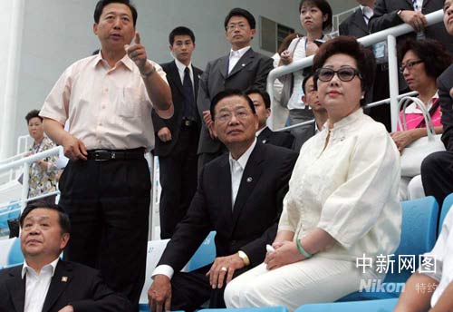 中新網(wǎng)北京6月12日電 12日下午15時19分許,;鶗麻L江丙坤一行抵達北京奧運場館“水立方”參觀。