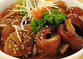 “萬巒豬腳”在制作時不放糖、鹽和味精,只用醬油,豬腳要用10多種草藥和香料腌制,在鹵制時要把溢出的油汁收干,吃起來沒有油膩感。