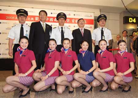 兩岸周末包機(jī)啟動(dòng),大陸居民赴臺(tái)觀光首發(fā)團(tuán)四日上午在南方航空抵臺(tái)后,揭開歷史序幕,機(jī)組人員在機(jī)場留下難得畫面。 “中央社”圖
