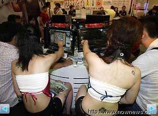 中新網(wǎng)8月1日電 一年一度的臺(tái)北計(jì)算機(jī)應(yīng)用展31日登場(chǎng),游戲廠商拼買(mǎi)氣,大手筆請(qǐng)來(lái)眾多超級(jí)辣妹女子兵團(tuán)。其中,有游戲的Show Girl把刺青貼紙貼在白嫩嫩的大腿上、有肚兜妹妹一對(duì)一陪伴民眾打電動(dòng),美艷撩人的“伴玩”表現(xiàn),讓男性民眾大呼:“真害羞!”
