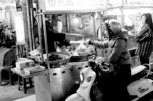 導(dǎo)游告訴記者,每一個夜市上的攤位,食品衛(wèi)生和環(huán)境整潔都必須搞好,否則很快就可能被取消資格。據(jù)統(tǒng)計,僅臺北市的攤販約有2.6萬戶,從業(yè)者共約4萬人,其中從事小吃飲食的占半數(shù),他們每天工作9個多小時,比上班族工時稍長。攤販多以家庭方式經(jīng)營,近年發(fā)展成連鎖店形式,雇用計時勞動者,攤商收入高過一般工薪階層,也正因?yàn)槿绱,他們都特別珍惜。