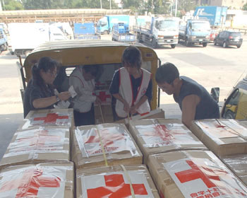 臺(tái)灣救援物資打盤裝機(jī)運(yùn)往大陸災(zāi)區(qū)。