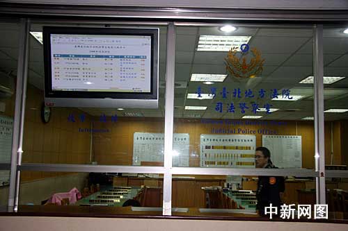 12月29日下午2時(shí),臺(tái)北地方法院召開前臺(tái)灣地區(qū)領(lǐng)導(dǎo)人陳水扁羈押庭,經(jīng)過長達(dá)12多小時(shí)的庭訊、評議后,合議庭審判長蔡守訓(xùn)30日2時(shí)25分裁定將陳水扁羈押,但不禁見。陳水扁被收押的公告就是在這里發(fā)布。 (中新社記者 陳立宇/攝)
