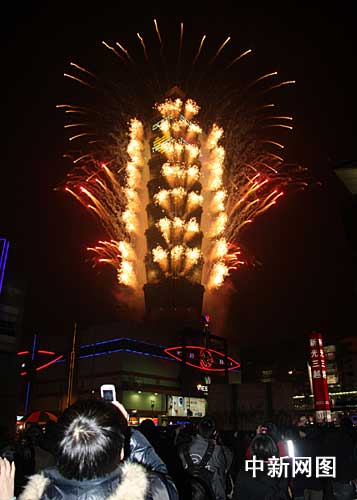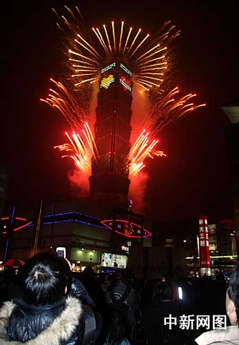 一月一日凌晨,臺(tái)北市在一0一大樓施放煙火,迎接2009年元旦的到來(lái)。吸引了大批市民觀看。 (圖文/中新社記者 陳立宇)