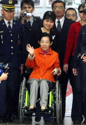 吳淑珍出庭時(shí)向旁邊人士招手示意